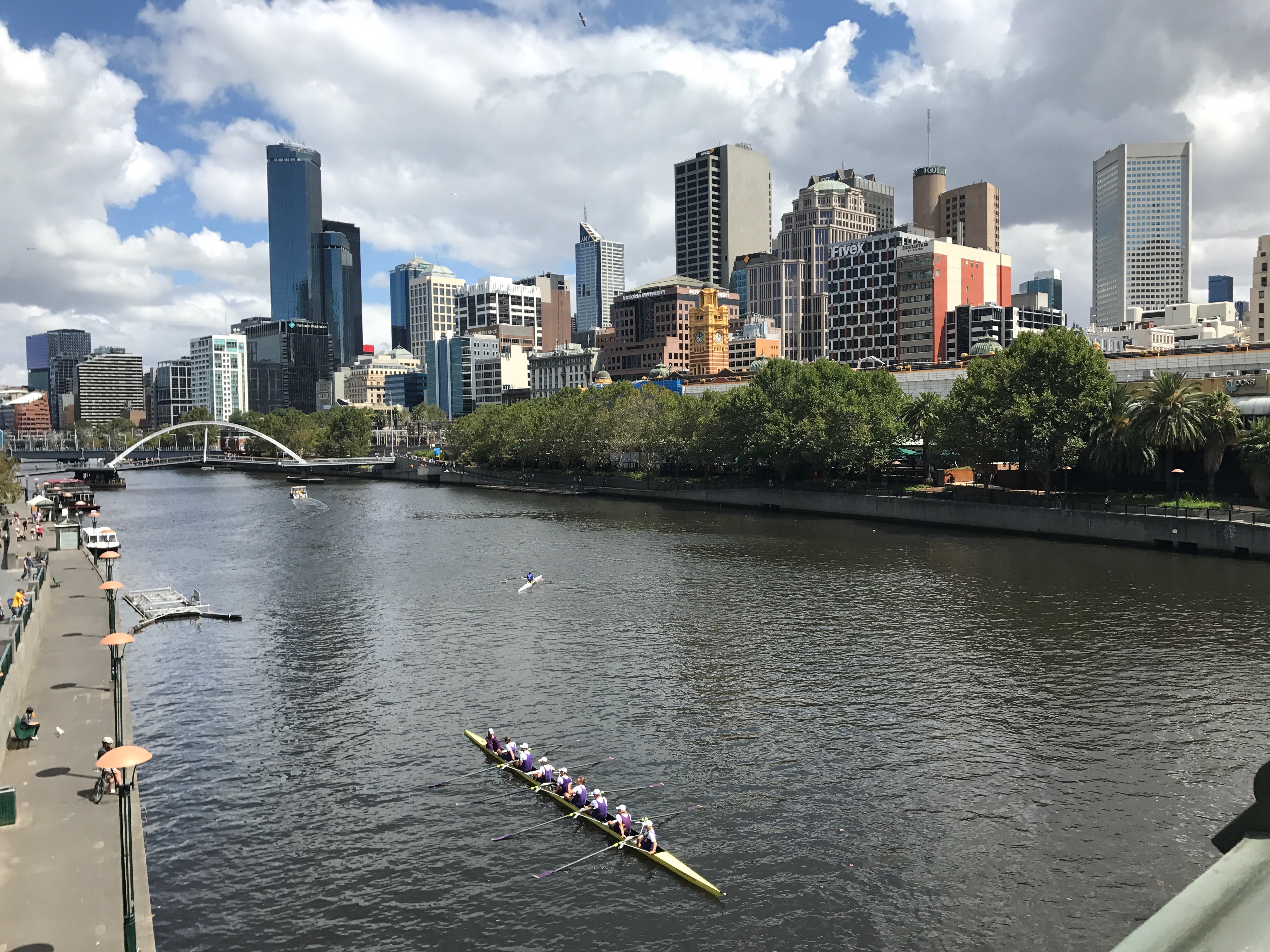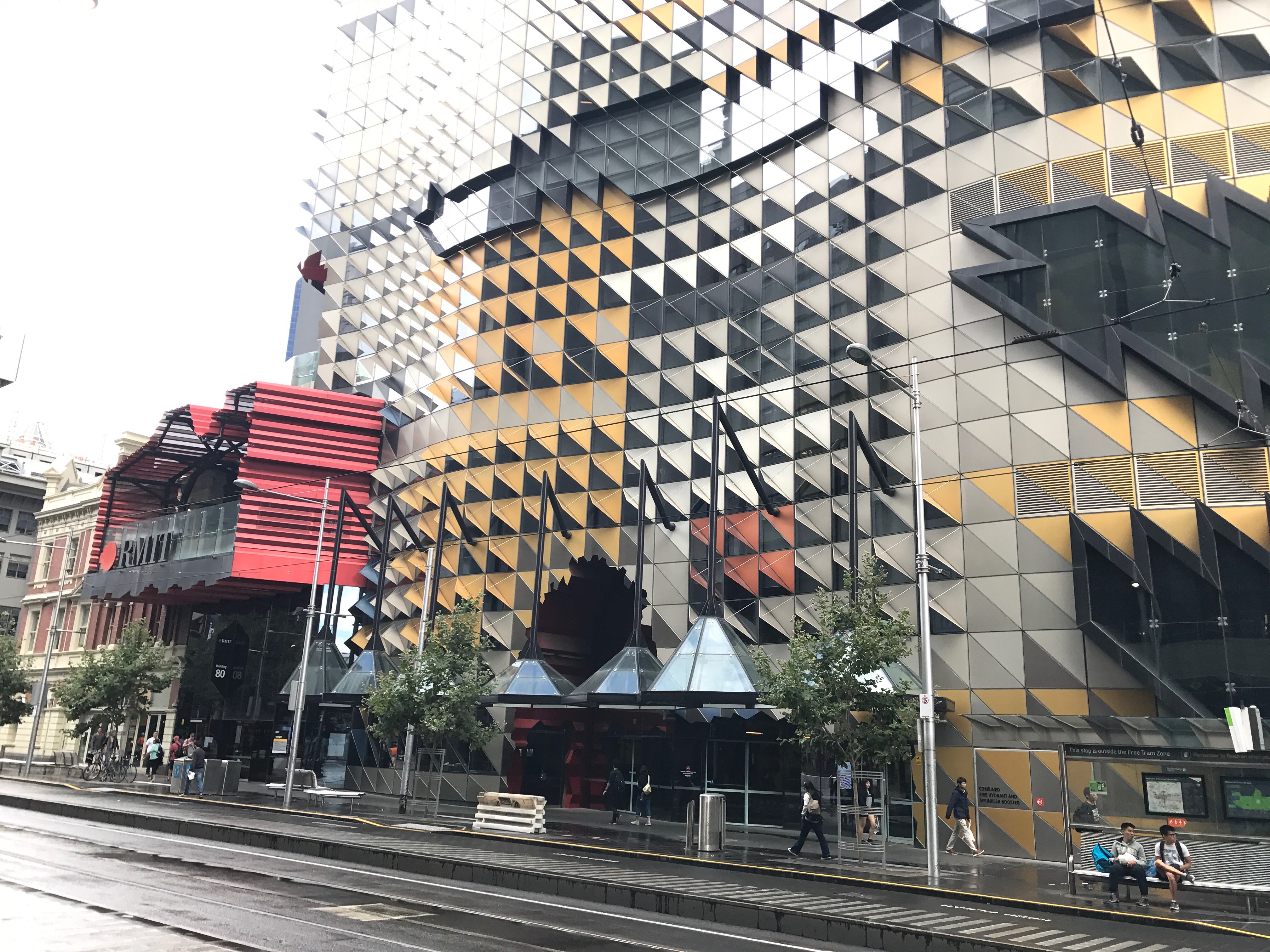 A couple of pictures of Melbourne when the sun was shining. The very modern building is part of the RMIT (Royal Melbourne Institute of Technology). The other picture is the city behind the Yarra river.