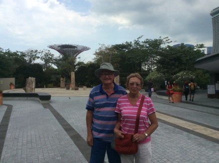 Yesterday we took the cable car to the mainland and then on to the Gardens by the Bay, most impressive, makes the Eden Project look quite small. Then we went to the top of the Marina Sands hotel (floor 56); they call it the ironing board, the views are spectacular. From there we took a river boat up the Singapore river to Clarke Quay and from there took the public transport system (MRT) to Jurong where we found a brilliant Indian restaurant where you view the menu and place your orders on an iPad ! As it was 6.00 and we hadn’t had any lunch we had lunch/dinner there; we both agreed that it was the tastiest meal we had in the 8 week trip. From Jurong we took the MRT back to the cable car and then on the cc back to the hotel – exhausted. Not sure what we are going to do today — possibly the Botanical Gardens and Jurong Bird Park.