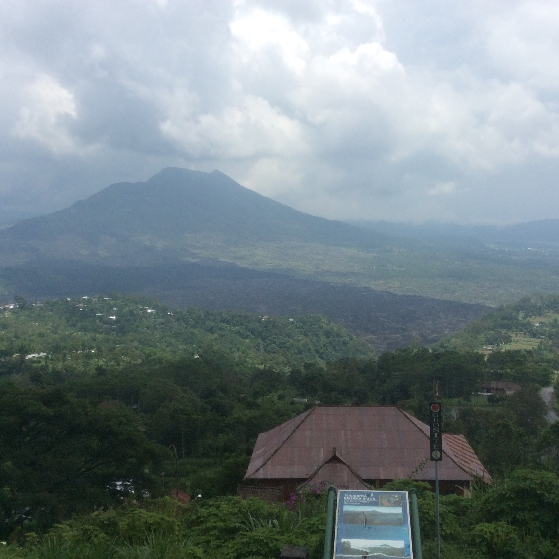 Today, our driver Putu, took us about 50 Kms north, to one of the volcanoes in the north of the island. It last had a major eruption in 1964. The weather was quite cloudy/ misty so the visibility was quite poor. However, the journey up and back was at least as interesting if not more so, than the destination itself. We saw loads of rice paddies, temples, coffee and spice farms and “jungle” type vegetation. The margin for error that the local drivers have is absolutely minimal and, to us, it seems amazing that we have not seen an accident yet. The drivers (mostly on motor bikes) just seem to create an harmonious flow which somehow works. No-one is aggressive and they just give a gentle toot if they are overtaking. We haven’t heard a horn used in anger and and we haven’t seen any violent braking or swerving.