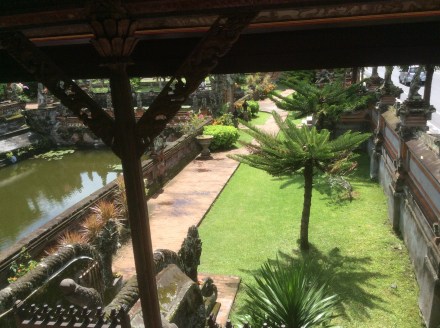Today we were taken by our driver Putu to Klungkung which you can see on screen shot map below. The gray button is the GPS position where we are now — that is, the villa where we are staying. We saw various interesting sights going up the east coast including a temple, a bat cave, a craft village and a palace. Lots of history all fascinating, Putu is very knowledgeable.
