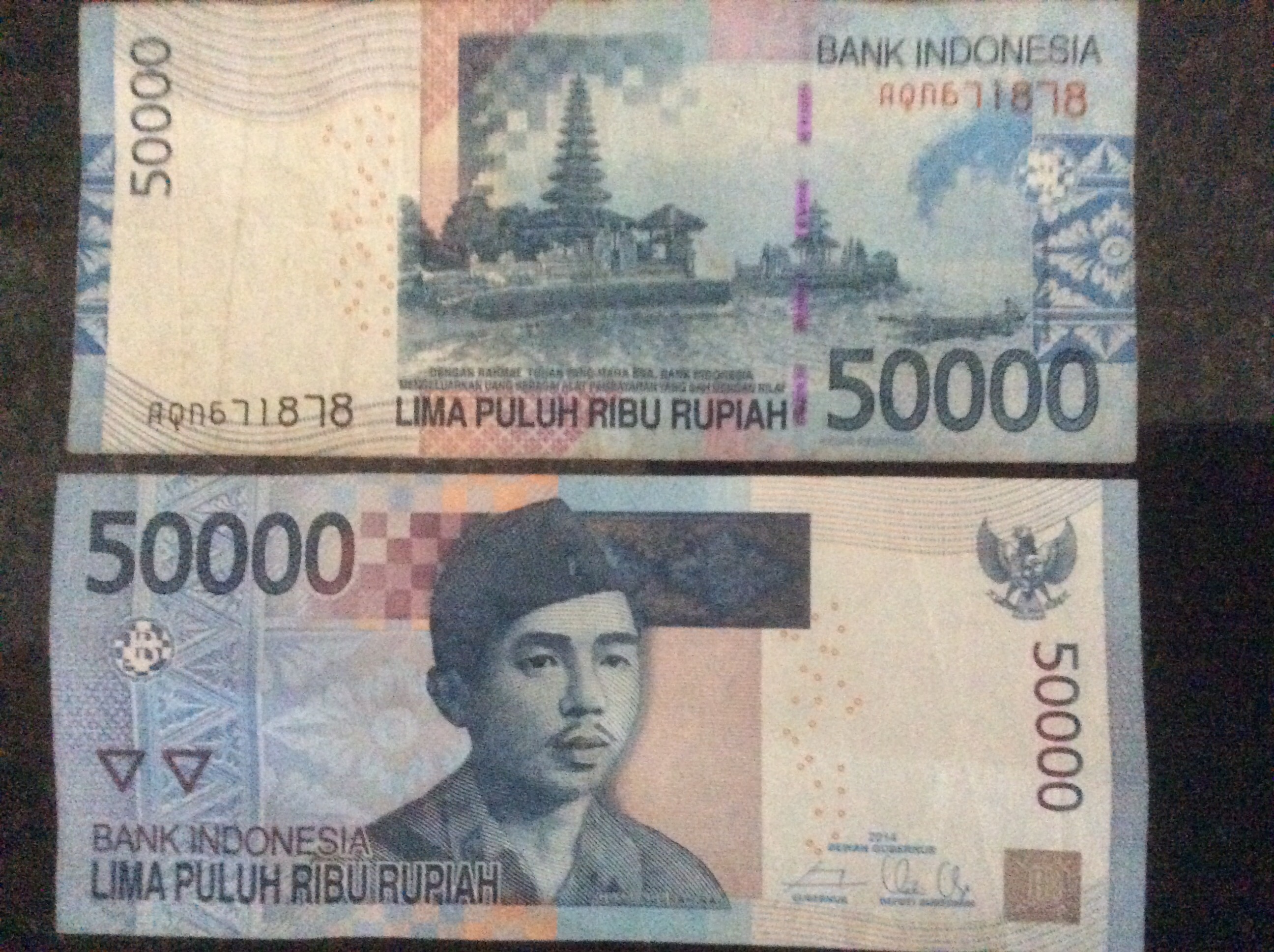 The currency takes a bit of getting used to. The unit is the Rupiah and there are around 19,000 to the Pound. This means that the 50,000 Rupiah note (see below) is only worth about £2.60. So, if you go out for a meal you might be frightened to bits when your bill comes to more than a million Rupiah !